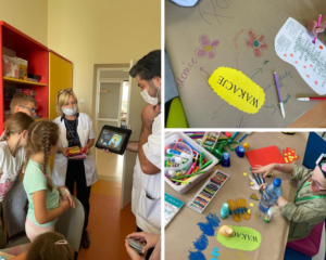 Z tej okazji pani Dyrektor Zespołu oraz pani Dyrektor Szpitala Dziecięcego złożyły wszystkim uczniom i nauczycielom życzenia. Potem wysłuchaliśmy też życzeń dzieci przebywających w szpitalu oraz ich wakacyjnych wspomnień. Zanim powitaliśmy szkołę, najpierw pożegnaliśmy wakacje, odgadując zagadki, rozwiązując krzyżówki i rebusy oraz wykonując inne interesujące zadania. Później zaczęliśmy przygotowania do nowego roku, rozmawiając o uczuciach, planach i marzeniach z nim związanych. Swoje przemyślenia spisaliśmy na kartkach. Nasze pożegnalno – powitalne działania zaowocowały powstaniem plakatów upamiętniających koniec wakacji i początek roku szkolnego, które zostały powieszone w świetlicach oddziałowych.