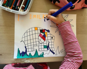 Cały miesiąc robiliśmy to, co lubimy najbardziej, realizowaliśmy nasze artystyczne pomysły. Wykonaliśmy piękne place plastyczne z kameleonem w roli głównej. Przygotowaliśmy prześliczne ptaki cudaki, mądre sowy i ozdobne łapacze. Stare gazety posłużyły nam do wykonania Eko Portretów. Wzięliśmy udział w akcji „Wszystkie śmieci są nasze”, której efektem były ciekawe prace przedstawiające prawidłową segregację odpadów. Spędziliśmy urocze plastyczne popołudnie z Elmerem. Bardzo poważnie podeszliśmy do pożegnania lata i przywitania jesieni. Ostatnie ciepłe promienie letniego słońca łapaliśmy w wykonanej przez nas świetlicowej Dżungli. Powstały też piękne rysunki przedstawiające kolorowe drzewa i spadające liście.